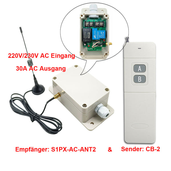 Dieser Empfänger S1PX-AC-ANT2 und der Sender CB-1/ CB-2 bilden ein Funk-Fernbedienungssystem. Dieses System kann in allen Arten von Industrie automation, Landwirtschaft, Haus, Fabrik, Haus, Bauernhof, Fahrzeug, Schiff, Offshore-Betrieb, Luftfahrzeug usw. Es kann verschiedene AC Geräte an Land, zu Wasser und in der Luft fernsteuern, wie Lichter, Sirenen, Schlösser, Motoren, Ventilatoren, Türen, Fenster, Elektromagnetventile, Sicherheitsalarm und Geschäftsschilder.