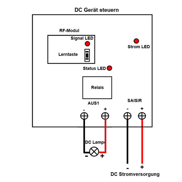 DC Stromversorgung Ausgang: Es kann 6V, 9V, 12V oder 24V Gleichstrom Geräte steuern.