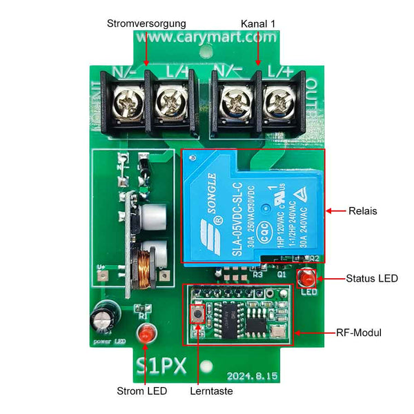 Maximaler Laststrom des Relais : 30A / Kanal