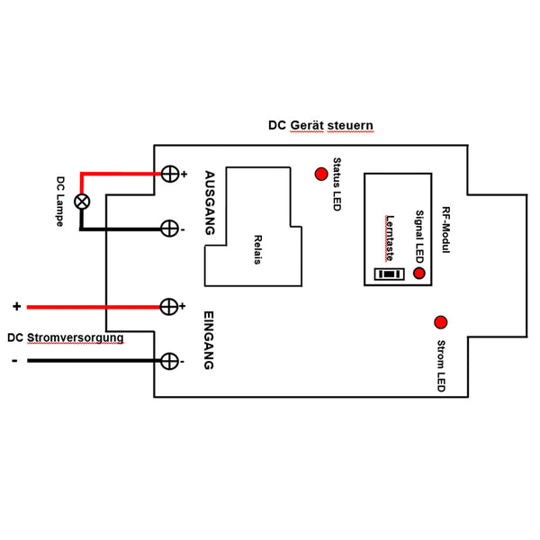 Drücken Sie die Taste am Sender: Die Klemme <AUSGANG> der Empfänger ausgang DC Stromversorgung, und die angeschlossene Lampe wird eingeschaltet.