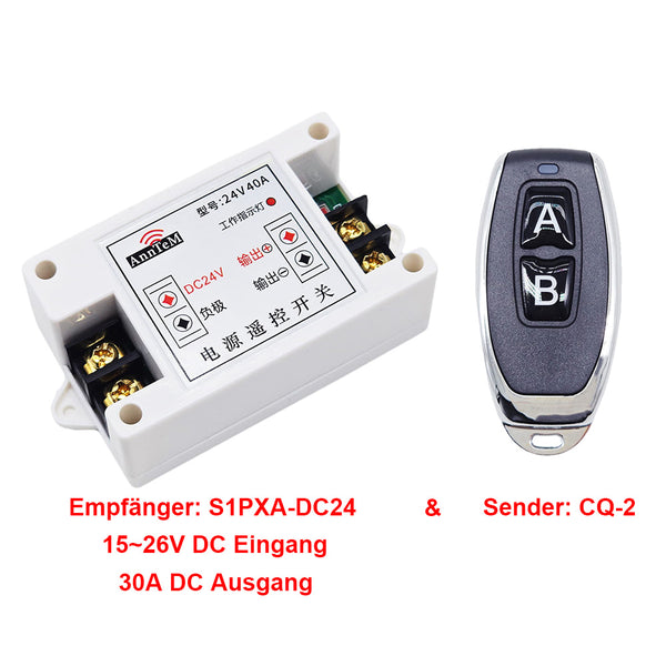 Dieser Empfänger S1PXA-DC12 / S1PXA-DC24 und der Sender CQ-1/ CQ-2 bilden ein Empfänger Sender System. Dieses System kann in allen Arten von Industrie automation, Landwirtschaft, Haus, Fabrik, Haus, Bauernhof, Fahrzeug, Schiff, Offshore-Betrieb, Luftfahrzeug usw. Es kann verschiedene DC Geräte an Land, zu Wasser und in der Luft fernsteuern, wie Lichter, Sirenen, Schlösser, Motoren, Ventilatoren, Winden, Jalousien, Linearantriebe, Türen, Fenster, Elektromagnetventile, Sicherheitsalarm und Geschäftsschilder.