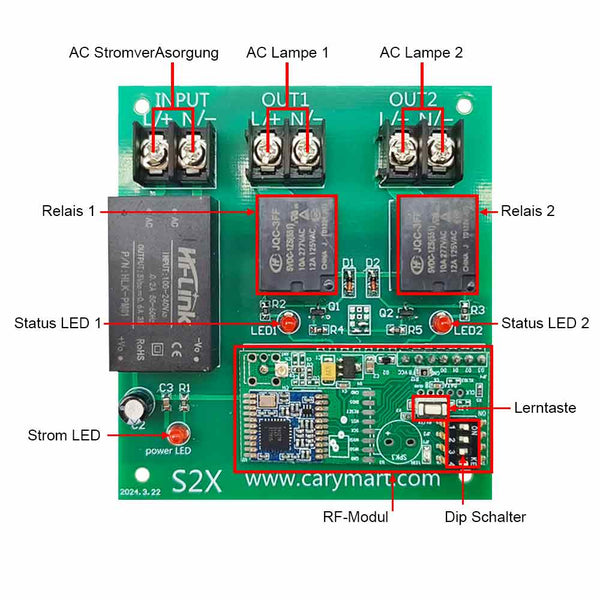 Maximaler Laststrom des Relais: 10A / Kanal