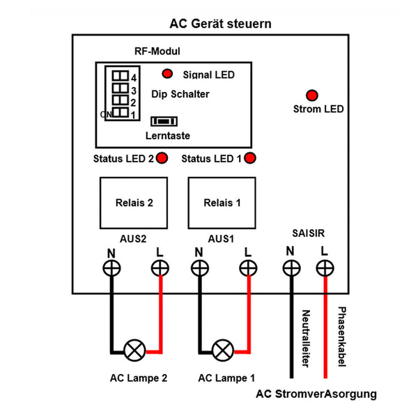 AC Stromversorgung Ausgang: Es kann AC 110V, 120V, 220V oder 240V Wechselstrom Geräte steuern.