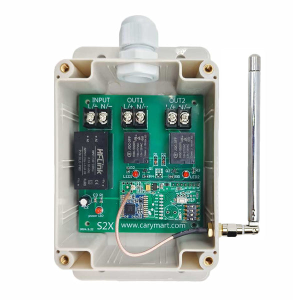 Dieser Empfänger ist ein elektrisches Gerät mit 2 Kanäle AC Stromversorgung Ausgang, es und der Sender bilden ein Empfänger Sender System. Dieses System kann in allen Arten von Industrie automation, Landwirtschaft, Haus, Fabrik, Haus, Bauernhof, Fahrzeug, Schiff, Offshore-Betrieb, Luftfahrzeug usw. Es kann verschiedene AC Geräte an Land, zu Wasser und in der Luft fernsteuern, wie Lichter, Sirenen, Schlösser, Motoren, Ventilatoren, Winden, Jalousien, Linearantriebe, Türen, Fenster, Elektromagnetventile, Sicherheitsalarm und Geschäftsschilder. Die Anwendungen sind endlos.