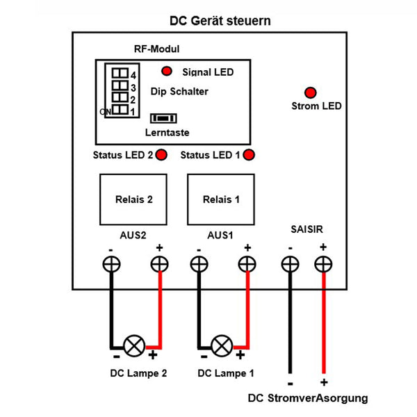 DC Stromversorgung Ausgang: Es kann 6V, 9V, 12V oder 24V Gleichstrom Geräte steuern.