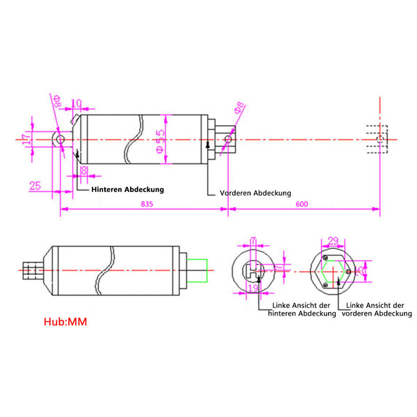 Eingebaute zwei Endlagenschalter, der Linearantrieb stoppt automatisch wenn die Hubstange die Endposition erreicht.