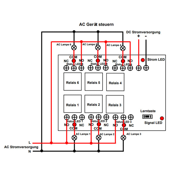 Relaisausgang: Dieser Empfänger ist der trockene Relaisausgang, es können zur Steuerung DC und AC Geräte verwendet werden. Die Ausgangsklemmen sind NO / NC (normalerweise geöffnet / normalerweise geschlossen) und dienen als Schalter.
