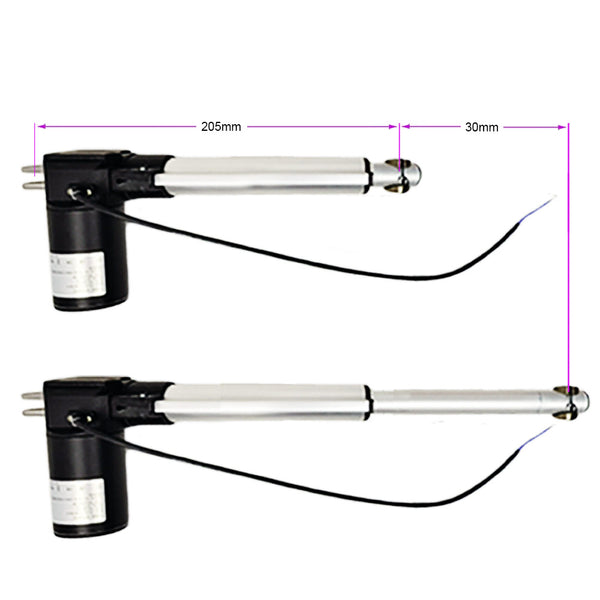 Einzugslänge: Wenn der Linearantrieb vollständig eingefahren ist, beträgt der Mittenabstand zwischen den beiden Montagelöchern 205 mm.