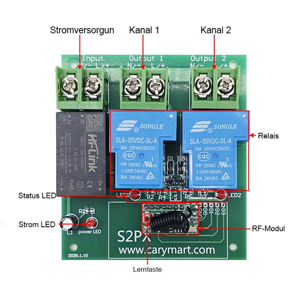 Maximaler Laststrom des Relais: 30A / Kanal