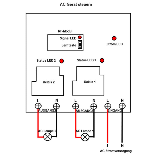 AC Stromversorgung Ausgang: Es kann AC 110V, 120V, 220V oder 240V Wechselstrom Geräte steuern.