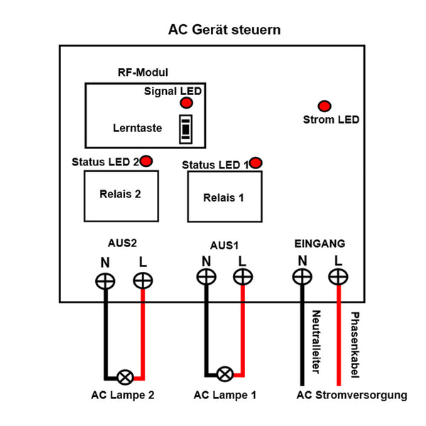 AC Stromversorgung Ausgang: Es kann AC 110V, 120V, 220V oder 240V Wechselstrom Geräte steuern.