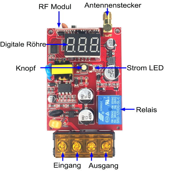 Sie können die Geräte durch den Empfänger und den Sender (Fernbedienung) steuern von jedem Orten innerhalb einer zuverlässigen Entfernung.