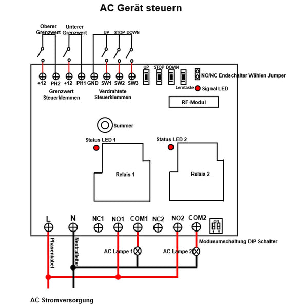 Relaisausgang: Dieser Empfänger ist der trockene Relaisausgang, es können zur Steuerung DC und AC Geräte verwendet werden.