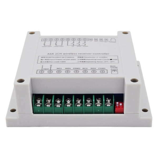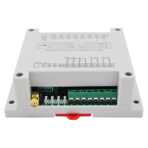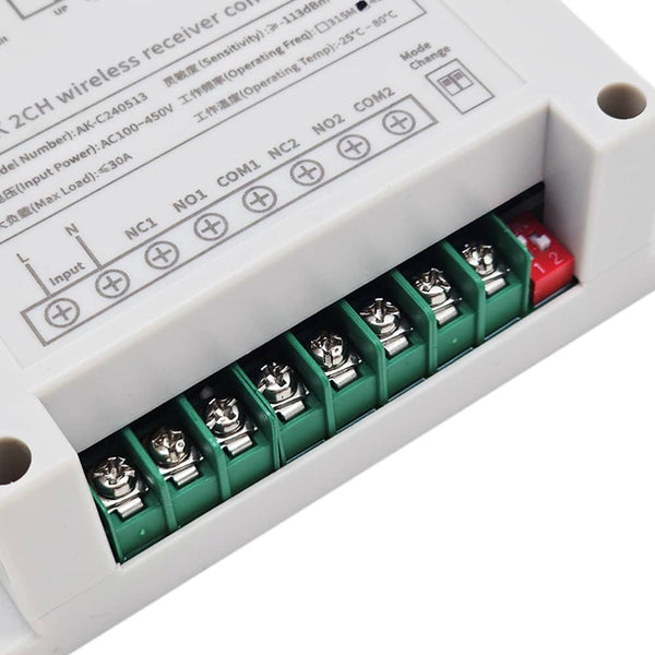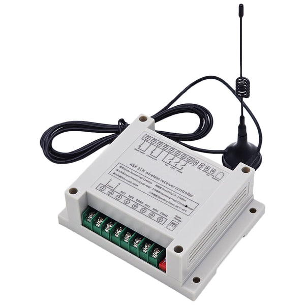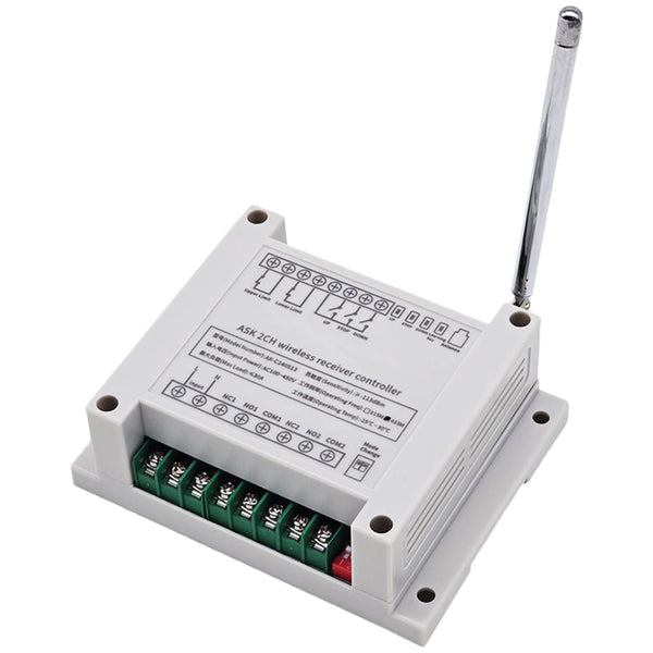 Dieser Empfänger ist ein elektrisches Gerät mit 2 trockenem Relaisausgang, es und der Sender bilden ein Empfänger Sender System. Dieses System kann in allen Arten von Industrie automation, Landwirtschaft, Haus, Fabrik, Haus, Bauernhof, Fahrzeug, Schiff, Offshore-Betrieb, Luftfahrzeug usw. Es kann verschiedene DC oder AC Geräte an Land, zu Wasser und in der Luft fernsteuern, wie Lichter, Sirenen, Schlösser, Motoren, Ventilatoren, Winden, Jalousien, Linearantriebe, Türen, Fenster, Elektromagnetventile, Sicherheitsalarm und Geschäftsschilder. Die Anwendungen sind endlos.