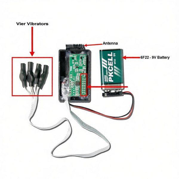 Drücken und halten Sie die Taste B des Sender, der zweite Vibrator vom Empfänger vibriert.
