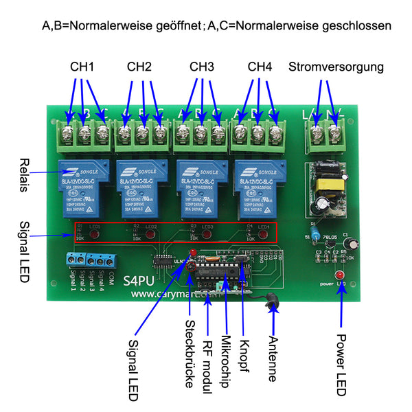 Dieser Empfänger S4PA-AC220 und der Sender CV-4-2 bilden ein Empfänger Sender System. Es kann in der Industrie-Automatisierung-, Landwirtschaft- und Heim-Automation, wie Fabrik, haus, bauernhof, weide, Fahrzeugen, Schiffen, Offshore-Betrieb, Luftfahrzeug, Feld Anruf, usw. Drahtlose Fernbedienung Produkte auf Land, Wasser und Luft, wie Funklichtschalter, Sirenen, Schlösser, Motoren, Ventilatoren, Winden, Jalousien, Elektrozylinder, Türen, Fenster, Elektromagnetventile, Signalisierung, Geschäftsschilder usw.