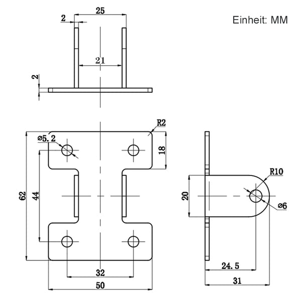 Jeder Linearantrieb würde zwei Befestigungsbügel erfordern, eine zur fixierung de Kopfe de Linearantrieb und eine weitere zur fixierung der Unterseite de Linearantrieb.