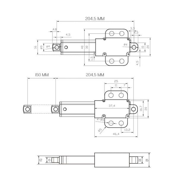 Diese Miniatur-Linearaktuatoren sind klein, leicht, leise und sehr langlebig. Geeignet für Anwendungen, die wenig Platz und kleine Lasten erfordern. Hauptsächlich verwendet für kleine Türen, Fenster, Möbel, Medizin- und Gesundheitsgeräte, landwirtschaftliche Maschinen, Fahrzeuge, Schiffe, Drohnen, Flugzeugmodelle, Automodelle, Schiffsmodelle, Robotik, Fernbedienungen und so weiter. Es kann diese Geräte öffnen, schließen, schieben, ziehen, anheben und absenken.