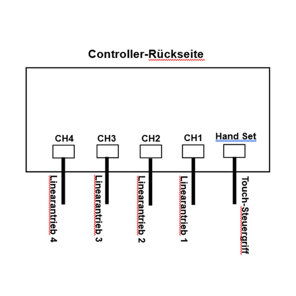 2) Stecken Sie vier Linearantriebe in die Anschlüsse CH1, CH2, CH3 und CH4 der Controller.