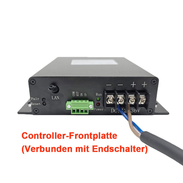 Wenn vier Linearantriebs fahren nach außen und ein Endschalter ausgelöst wird, verbindet er die zwei Klemmen <UP> und <COM> und die vier Linearantriebs stoppt automatisch.