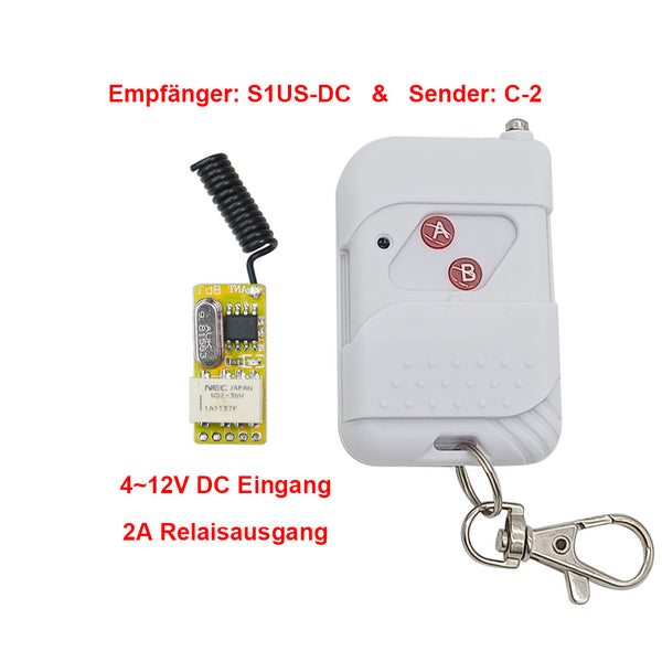 Der Empfänger S1US-DC und der Sender C-2 bilden ein Empfänger Sender System. Es kann Lichter, Motoren, Ventilatoren, elektronischen bedienten Türen / Schlösser / Fenster / Markisen / Autos oder andere Ausrüstungen mit einer Spannung von AC110~240V oder DC0~28V steuern.