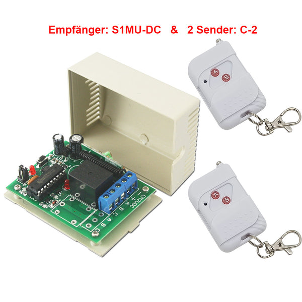 Ein Empfänger S1MU-DC und zwei Sender C-2 bilden ein Empfänger Sender System. Dieses System kann in allen Arten von Industrie automation, Landwirtschaft, Haus, Fabrik, Haus, Bauernhof, Fahrzeug, Schiff, Offshore-Betrieb, Luftfahrzeug usw. Es kann AC oder DC Geräte an Land, zu Wasser und in der Luft fernsteuern, wie Funklichtschalter, Sirenen, Schlösser, Motoren, Vertilatoren, Türen, Fenster, Elektromagnetventile, Signalisierung, Geschäftsschilder usw.