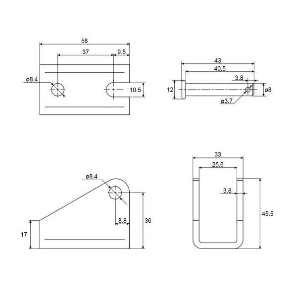 Der Durchmesser der Befestigungslöcher für die Front- und Rückverbinder: 8mm